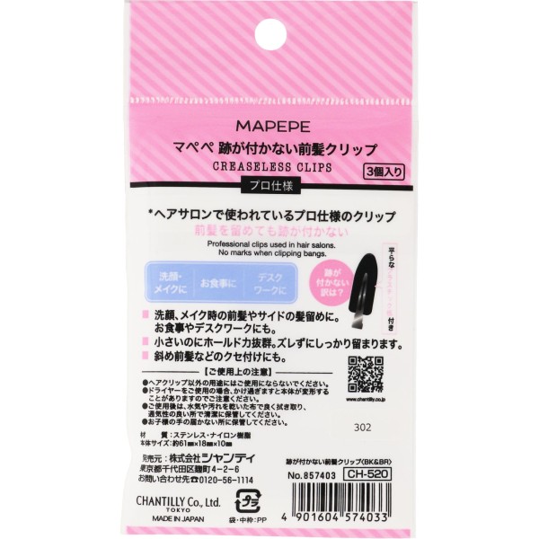 mapePe 흔적이 남지 않는 앞머리 클립 BK&BR _ 샨테이 > 헤어핀·헤어 바레타