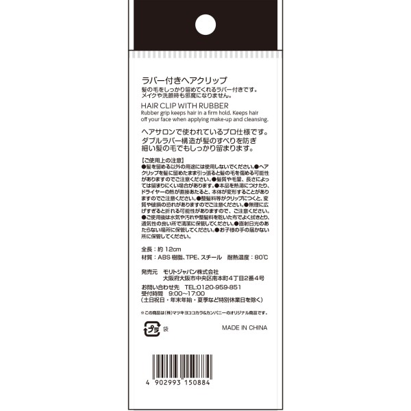 마츠키요 고무부착 헤어클립 2P > 헤어핀·헤어 바레타