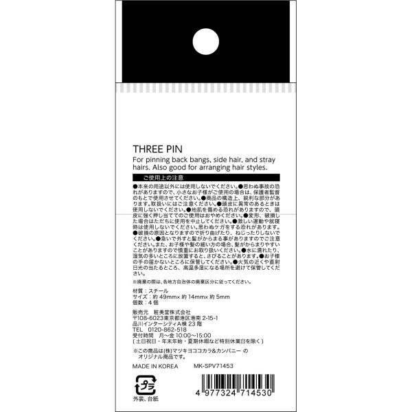 마츠키요 슬리핀 검정 4개 > 헤어핀·헤어 바레타