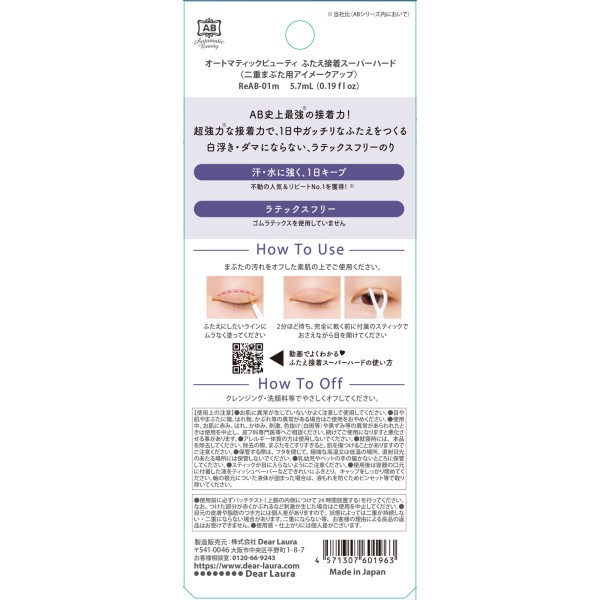 AB史上最強の接着力で、汗・水に強く1日中ふたえキープ!透明のりを塗って乾かして、接着するだけなのでふたえ初心者にもオススメ!