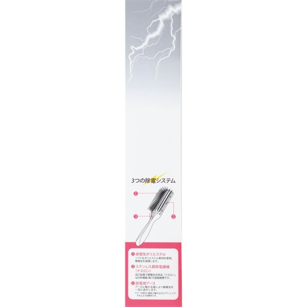 静電気を除去し、静電気による髪のダメージを軽減するブラシです。