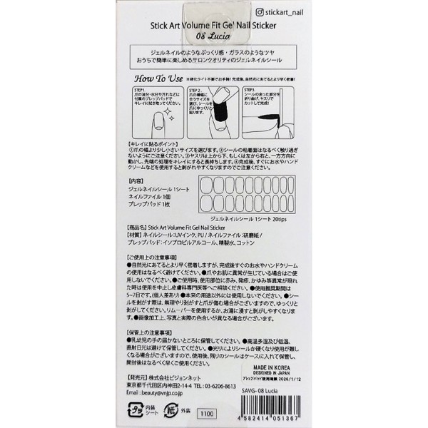 Stick Art 볼륨피트젤네일 SAVG-08 > 인조 손톱 (네일 글루 포함)