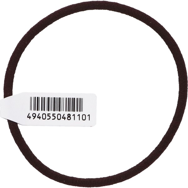 こげ茶のシンプルな、まるいリングタイプの髪留めです。Mサイズの細目タイプです。