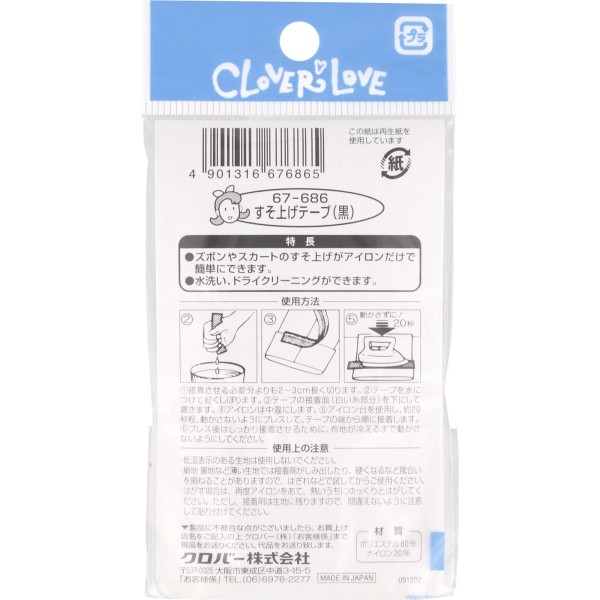 밑단 올림 테이프(블랙) 23mm폭x1.2m 67-686 클로버 > 재봉·소잉