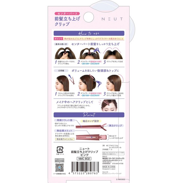 뉴트 앞머리 세우기 클립 핑크 NMC802 스타라보코스메틱스 > 헤어핀·헤어 바레타