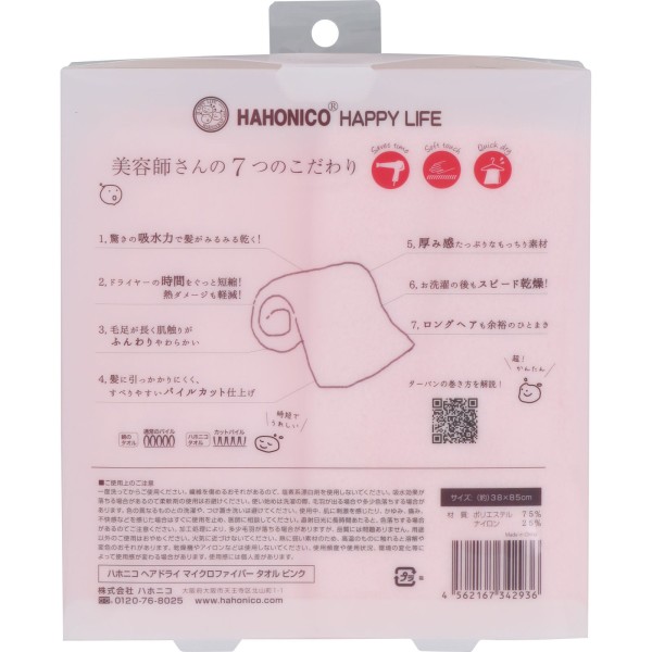 헤어 드라이 마이크로 파이버 타올 핑크 하호니코 > 샤워캡·배스터번