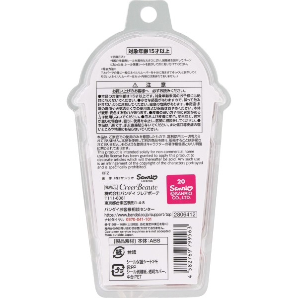 캬라네일파츠 헬로키티 8개 반다이 > 인조 손톱 (네일 글루 포함)