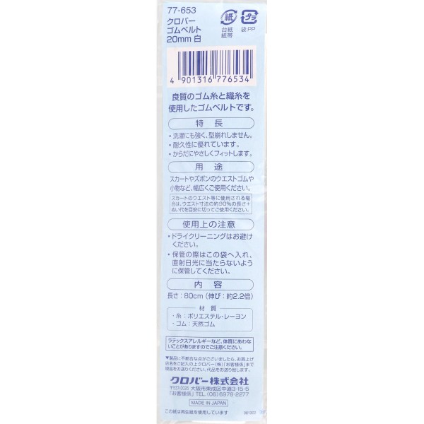 고무 벨트 20mm 흰색 _ 클로버 > 재봉·소잉