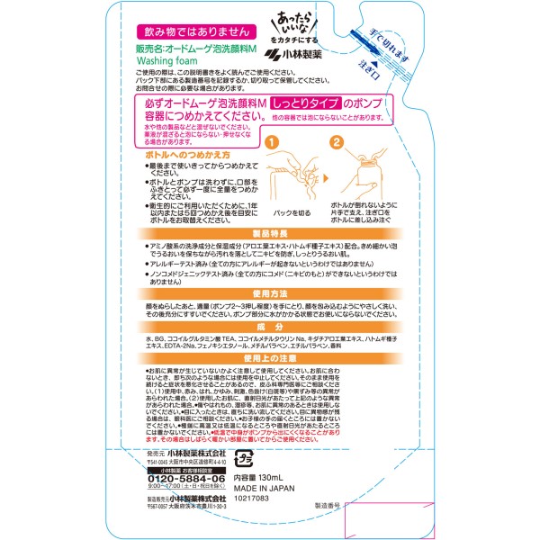 오드무게 거품 세안료 촉촉 타입 리필용 130ml 고바야시제약