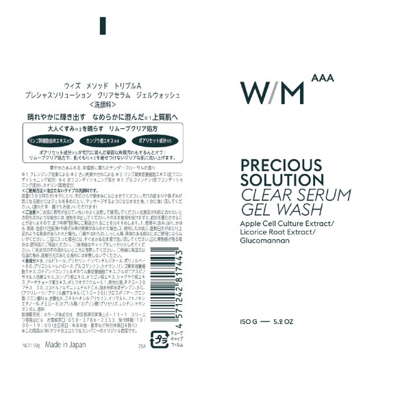 matsukiyo WMAAA P 클리어 세럼 젤 워시 150g > W/M AAA(PB)