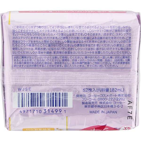 소프티모 메이크 클렌징 시트 (히알루론산) 리필 52매 KOSE 코세 코스메포트 > 소프티모