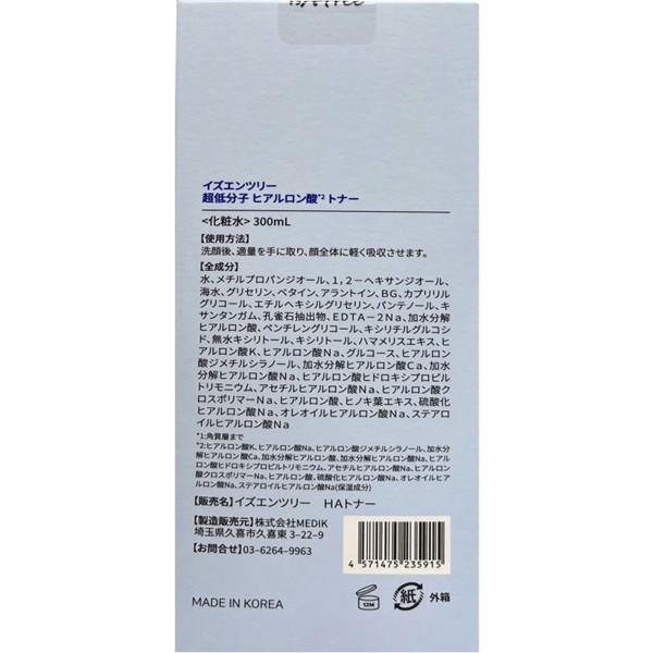 이즈앤트리 초저분자 히알루론산 토너 300ml > 화장수