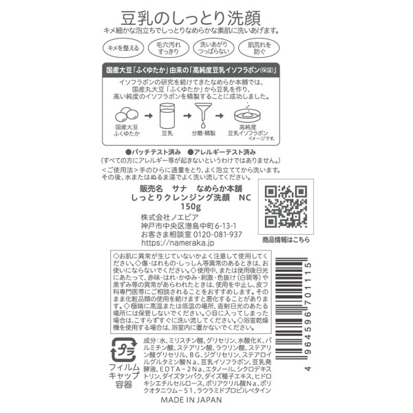나메라카 혼포 촉촉 클렌징 세안 NC 150G 도키와약품 > 나메라카 혼포