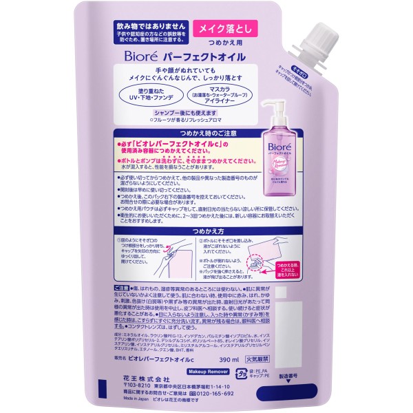 비오레 퍼펙트 오일 리필용 대용량 390mL 카오 > 비오레
