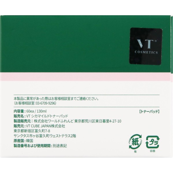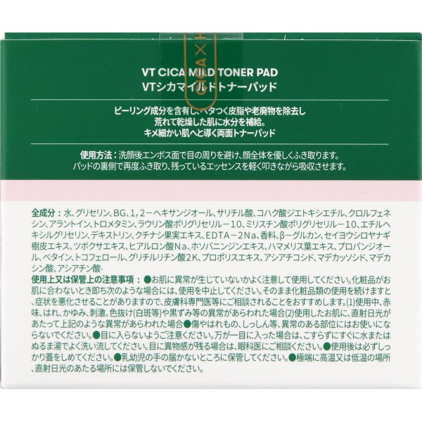 VT CICA (시카) 마일드 토너 패드 60매 입 VT CUBE JAPAN > 기타