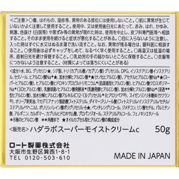 하다라보 고쿠준프리미엄 히알루론산크림 50g 로토제약 > 하다라보