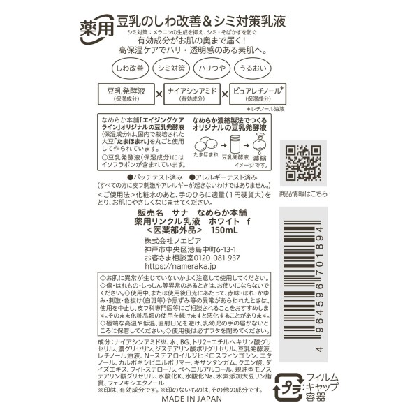 나메라카 혼포 약용링클유액 화이트 150ml 도키와약품 > 나메라카 혼포