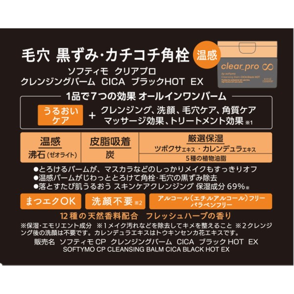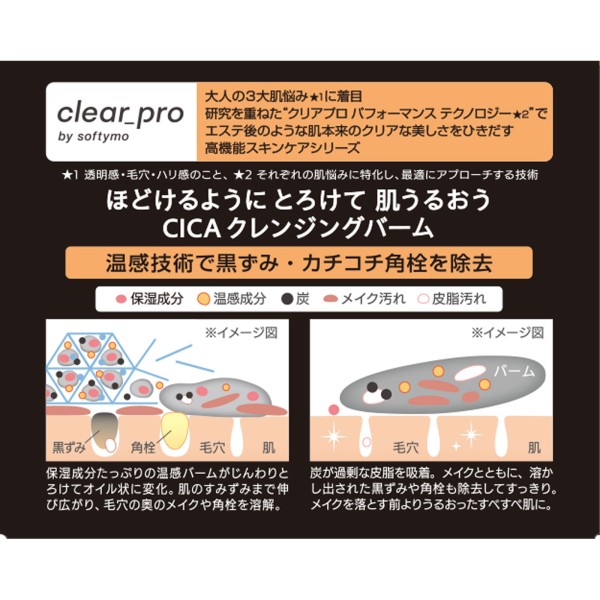 소프티모 클리어 프로 클렌징밤 CICA 블랙핫 90g KOSE 코세 코스메포트 > 소프티모