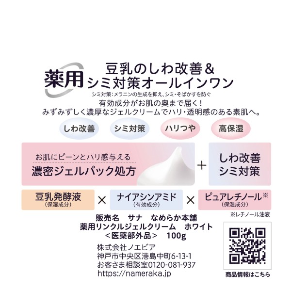나메라카 혼포 약용링클젤크림 화이트 100g 도키와약품 > 나메라카 혼포