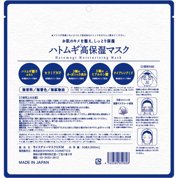 国産ハトムギ種子エキス・セラミド・3種のオーガニック成分配合!