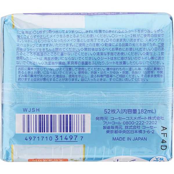 소프티모 메이크업 클렌저시트(콜라겐) 리필 52매 KOSE 코세 코스메포트