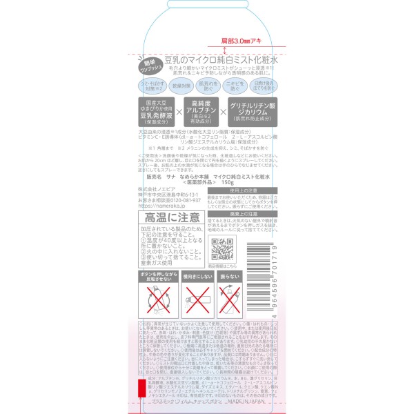 사나 나메라카 혼포 마이크로 순 화이트 미스트화장수 150g 도키와약품 > 나메라카 혼포