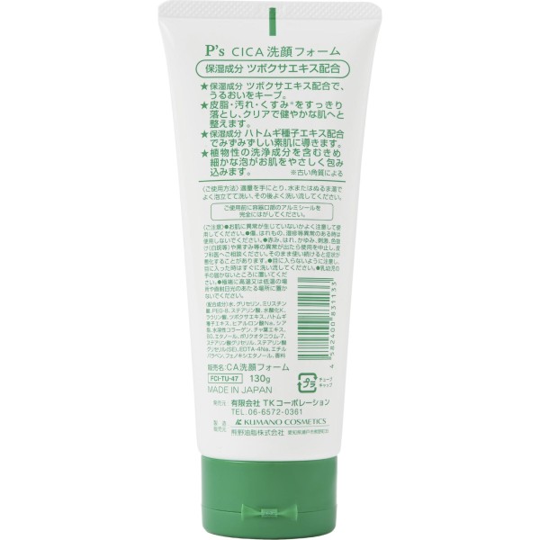 話題の成分、CICA(ツボクサエキス)配合の洗顔フォーム。