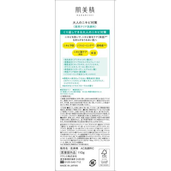 하다비세이 성인 여드름 대책 약용 화이트 클리어 세안료 110g 크라시에홈프로덕츠 > 기타