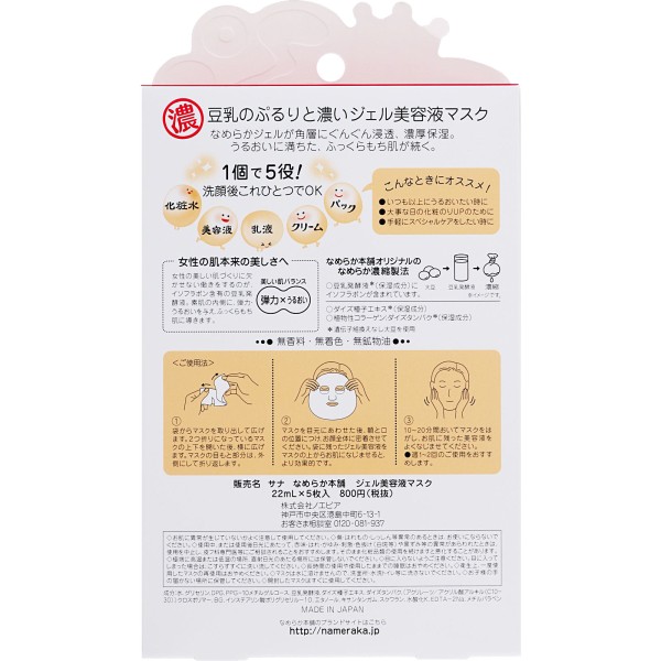 사나 나메라카 혼포 젤미용액마스크 5매입 도키와약품 > 기타 마스크