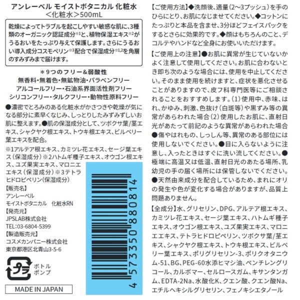 안레이블 모이스트보태니컬화장수 500ml 코스메컴퍼니 > 기타