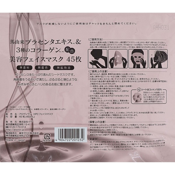 알로비비 플라센타&콜라겐페이스마스크 45매입 도쿄 알로에 > 기타 마스크