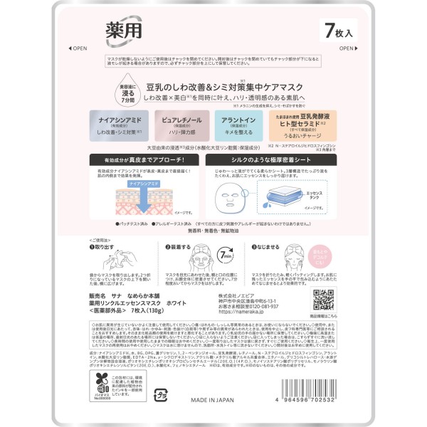 나메라카 혼포 약용링클에센스마스크 화이트 7매 도키와약품 > 기타 마스크
