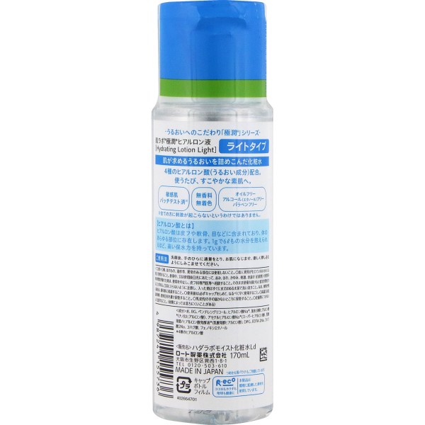 하다라보 고쿠준히알루론산액라이트타입N 170ml 로토제약 > 하다라보