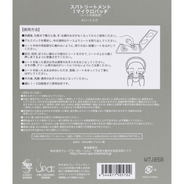 스파 트리트먼트i마이크로패치 4매입 웨이브 코퍼레이션 > 기타 마스크