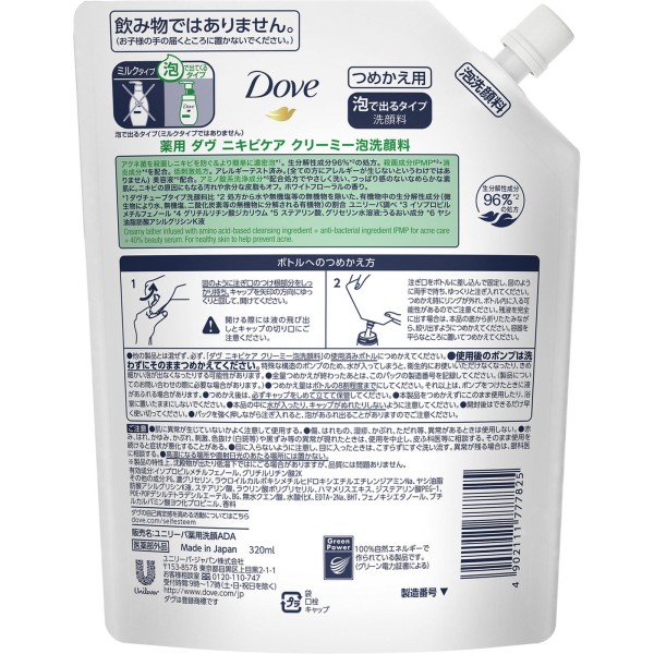 도브 여드름 케어 크리미거품 세안료 리필대사이즈 320ml 유니레버 재팬 > 도브