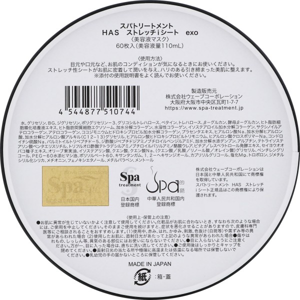 스파 트리트먼트HAS스트레치i시트exo 60매 웨이브 코퍼레이션