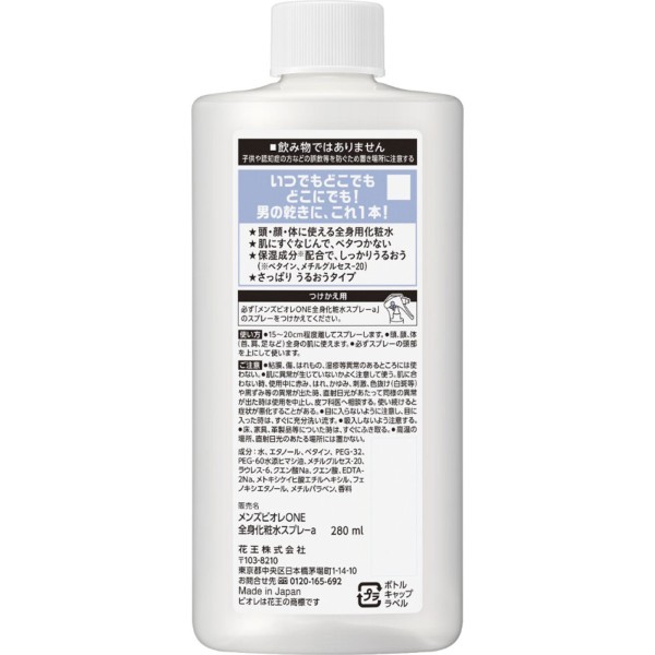 맨즈비오레 ONE 전신화장수스프레이 산뜻대용량교체 280ml 카오 > 밀크·로션