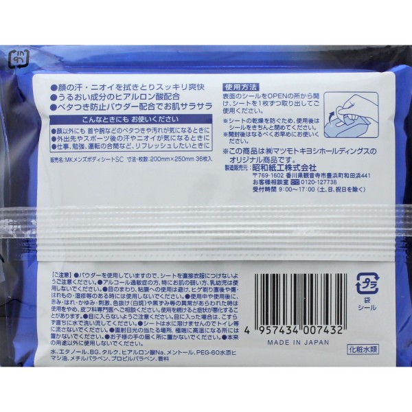 마츠키요 맨즈바디 시트 슈퍼쿨 36매 > 보디 페이퍼