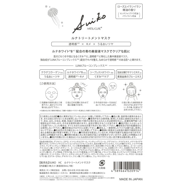 SUIKO 루나화이트트리트먼트마스크 3매입 씨 스타일