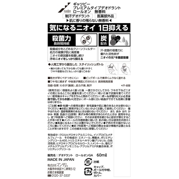 개츠비 프리미엄 데오 롤온 무향 60ml 만담 > 발한 억제제