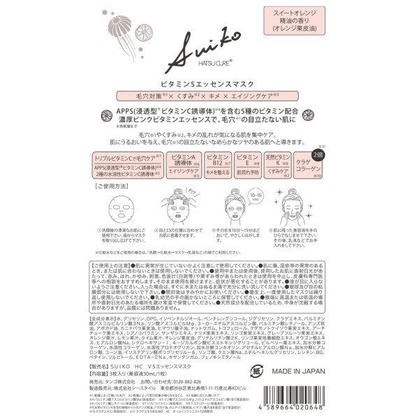 SUIKO HC 비타민5에센스마스크 3매입 씨 스타일 > 기타 마스크