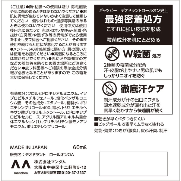개츠비 EX프리미엄타입데오도란트롤온 무향 60ml 만담 > 발한 억제제