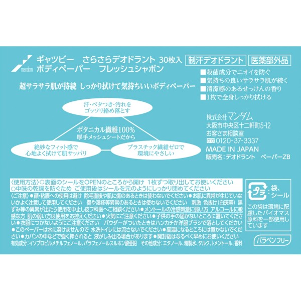 개츠비 산뜻데오도란트 바디 페이퍼 프레쉬 사봉 대용량 30매 만담 > 보디 페이퍼