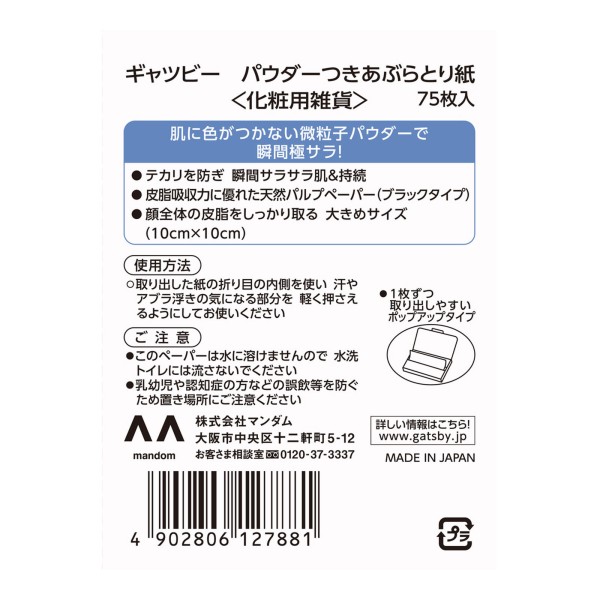 개츠비 파우더 부착 기름 흡수지 75매입 만담 > 유분 제거 종이