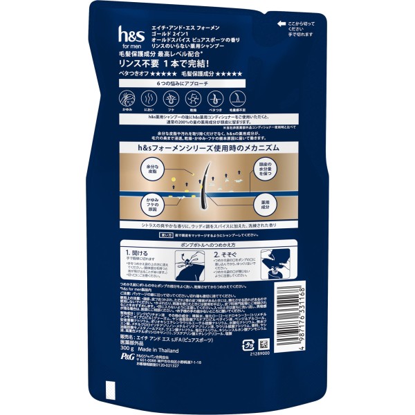 h&sformen골드2in2샴푸올드 스파이스퓨어 스포츠 향리필 300g P&G재팬 > 스캘프 샴푸·린스