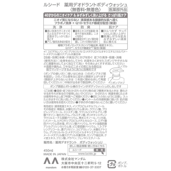 루시도 약용 데오도란트 바디워시 450ml 만담 > 전신 세정료