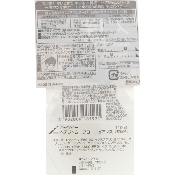 개츠비 헤어 잼 플로뉘앙스 110ml 만담 > 헤어 젤