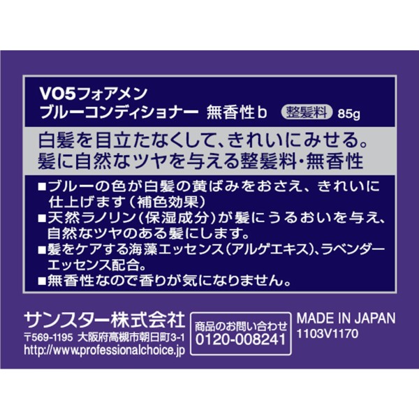 VO5 for MEN 블루컨디셔너 무향 85g 썬스타 > 기타