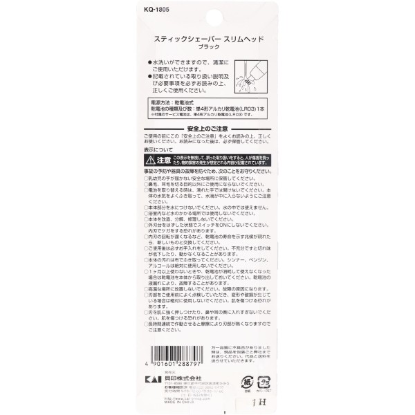 스틱쉐이버 슬림 헤드 블랙 1개입 카이 안전면도 > 면도 케어