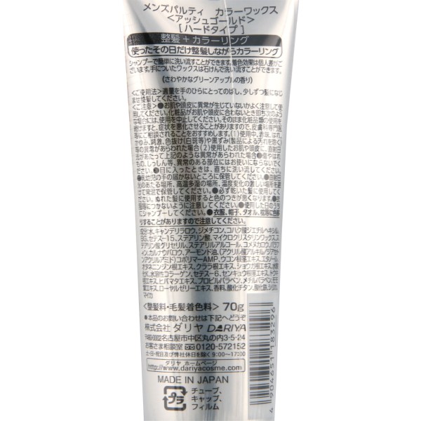 맨즈팔티 컬러왁스 애시골드 70g 다리야 > 헤어 왁스